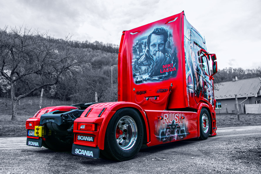 A real showpiece inspired by racing legend Niki Lauda and the film Rush. This collector's model features striking red special paint detailing and comes equipped with premium custom parts including a bulbar, protective window guards, an extra-high sun visor and more
