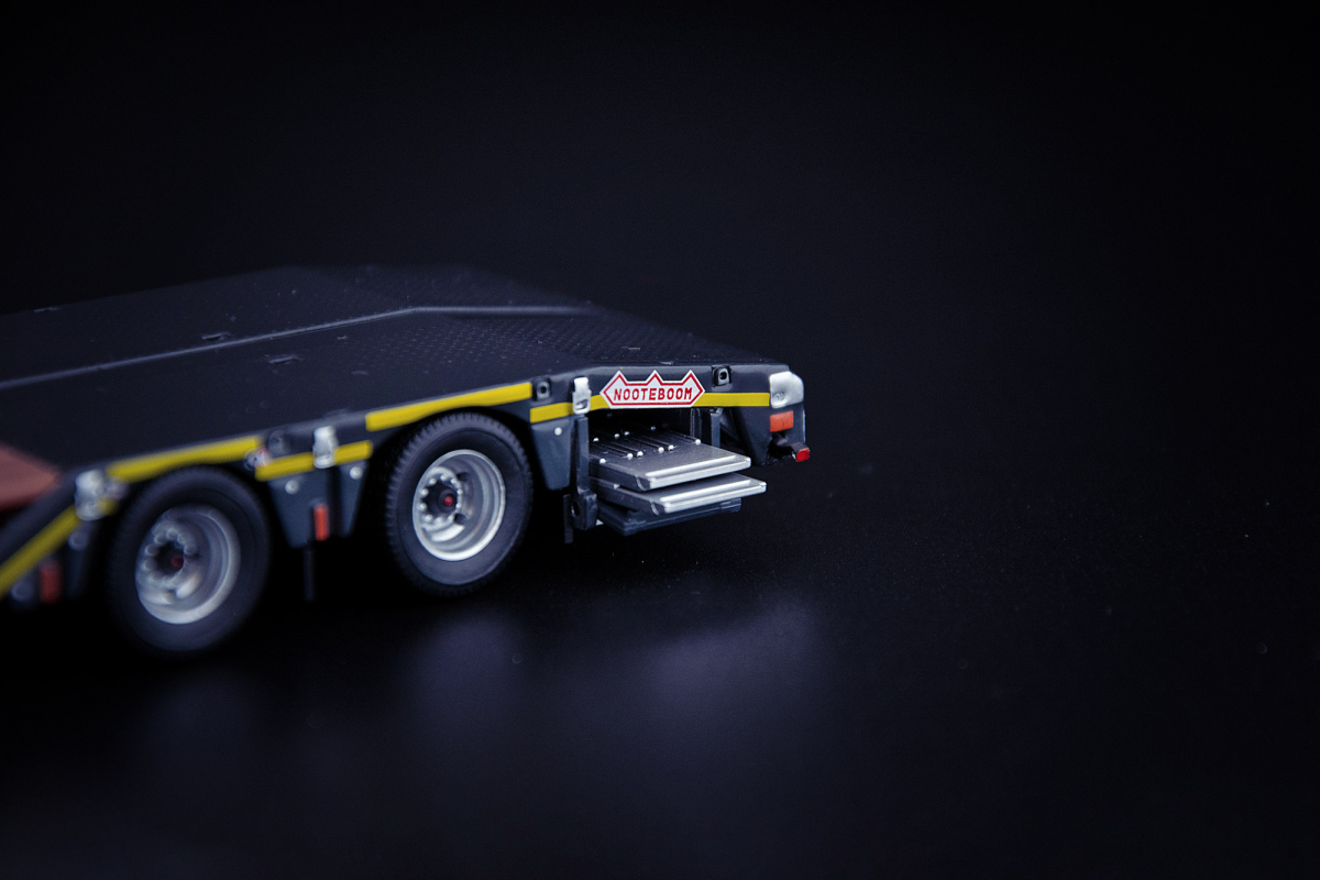The Grey Series Nooteboom OSDS Semi Low Loader 3 Axle with wheel wells is the perfect addition to your truck collection. The trailer in scale 1:50 is manufactured from high-quality die-cast metal and comes in grey color scheme RAL 7021.