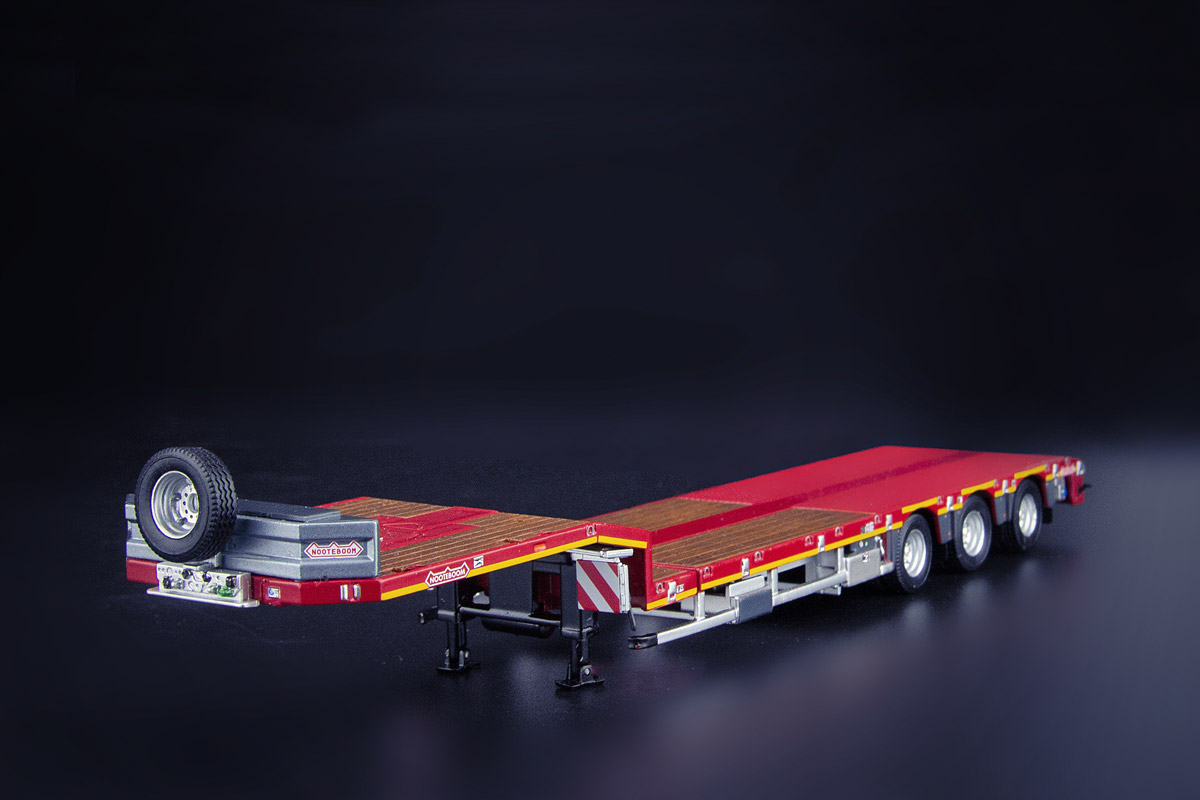 The 3- and 4-axle semi low-loaders in scale 1:50 feature many realistic details; such as an extendable load floor which can be locked in different lengths, a deck that is equipped with faux hardwood floors and a chassis that features proportionally steered SAF axles. Furthermore, our die-cast model is full of detailed warning and control signs.